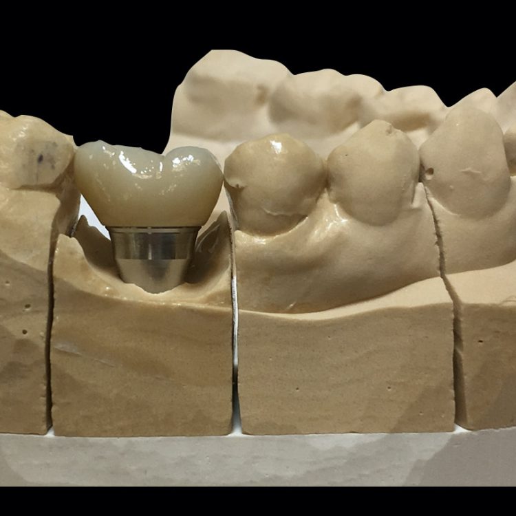 Un implant dentaire remplace la racine d’une dent naturelle et sert d’ancrage à une ou plusieurs dents. On peut donc avoir plusieurs implants intégrés en bouche pour y visser ou coller des éléments prothétiques allant jusqu’à l’arcade complète, fixe ou amovible. Nous fabriquons tous types de prothèses sur implants, selon le besoin du patient et les demandes du dentiste.